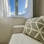 The bright & comfortable lounge benefits from generous seating and large windows, creating a light-filled space to unwind. The fully equipped kitchen and dining area has been designed with practicality in mind, now enhanced with an integrated microwave, alongside a 4-ring hob, oven and large fridge-freezer, making your stays even easier and more enjoyable.