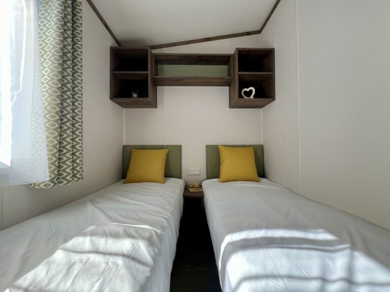 This 32’ x 12’ model features two well-proportioned bedrooms, including a spacious master bedroom complete with an ensuite toilet & walk-in wardrobe, offering that extra touch of convenience and comfort. A modern family shower room and additional twin bedroom make it ideal for hosting family and friends.