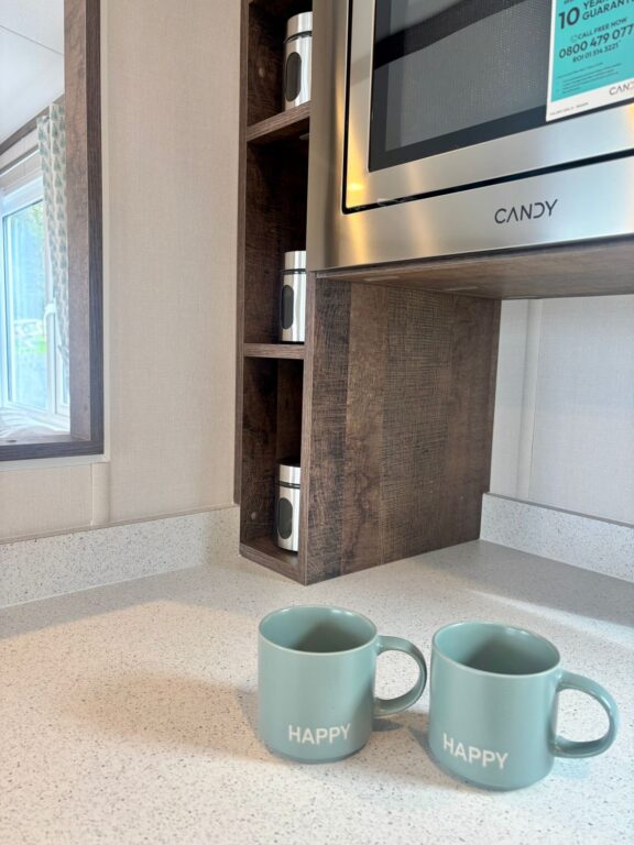 Sideways-On Serenity: The entire length of the caravan becomes your window to the world, flooding the kitchen and lounge with natural light from almost every direction.